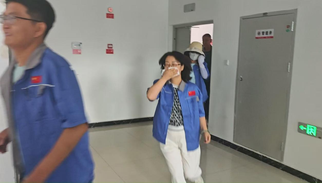接到疏散指令后,各部門員工在疏散引導(dǎo)組的指引下,用濕毛巾捂住口鼻,低姿彎腰,按照預(yù)定的疏散路線快速、有序地撤離至指定的“人員疏散集結(jié)點”。